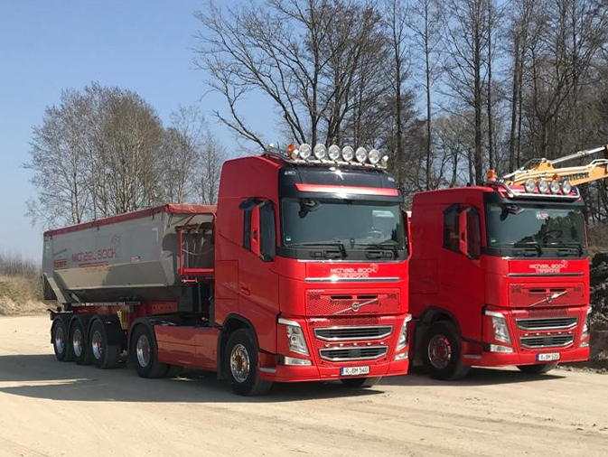 Unser Fuhrpark umfasst derzeit 8 LKWs, bestehend aus Kippsattelzügen, 3 Achser mit Bordmatic und Tandemanhänger.
